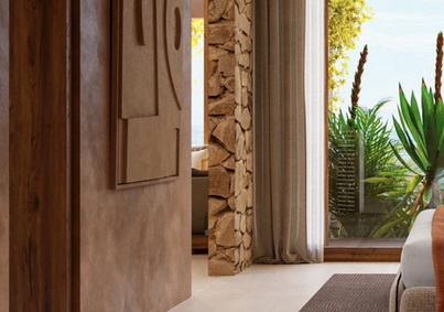 The villas boast spacious open-plan living areas, en-suite bedrooms, and fully equipped kitchens, all with panoramic sea views. High-quality materials, air conditioning, LED lighting, and private gardens with swimming pools create an inviting atmosphere. Inspired by nature. The design incorporates handcrafted finishes using wood, steel, concrete, and ceramics for a timeless appeal.